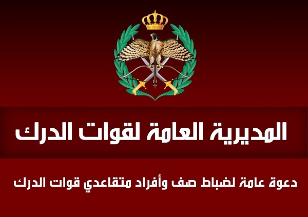 ووجهت المديرية العامة في إعلانها المنشور على صفحاتها الرسمية، دعوة عامة إلى جميع متقاعديها من ضباط الصف والأفراد، لحضور اللقاء الذي سيقام في تمام الساعة الثانية عشر ظهراً من يوم غدٍ الخميس الموافق 28/03/2019 في المديرية العامة لقوات الدرك/ قاعة الشهيد العقيد الركن سائد محمود المعايطة.
