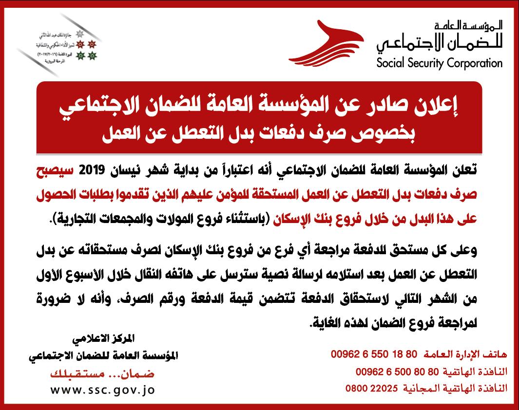الضمان الإجتماعي يعلن عن صرف دفعات بدل التعطل عن العمل. On مارس 28, 2019 Share وكالة الناس – إعلان صادر عن المؤسسة العامة للضمان الاجتماعي بخصوص صرف دفعات بدل التعطل عن العمل.