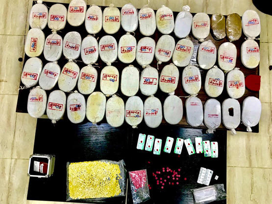 وأضاف الناطق الإعلامي أنه وبعد التحقيق والمتابعة تم تحديد هوية ثلاثة أشخاص ومكان تواجدهم واخفائهم لكميات من المواد المخدرة داخل أحد المنازل جنوب العاصمة ، حيث جرت مداهمته والقي القبض على اثنين منهم فيما لاذ الثالث بالفرار وما زال البحث جارياً عنه ، وبتفتيش المنزل تم ضبط ٥٠ كفاً من مادة الحشيش و ٤٠٠٠ حبة كبتاجون مخدرة وكميات كبيرة من حبوب الترامادول المخدرة.
