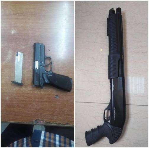 وأضاف أن متابعة المعلومات عن حيازة أشخاص لأسلحة نارية غير مرخصة أدى إلى ضبط مسدس غير مرخص وعتاد خاص به، بحوزة شخص في منطقة صويلح، كما تم ضبط قطعتي سلاح بمب أكشن عثر عليهما لدى تفتيش منزلين في كل من الرمثا واربد وألقي القبض على حائزيها، مضيفا انه تم اتخاذ الإجراءات القانونية والإدارية اللازمة بحق جميع الأشخاص.