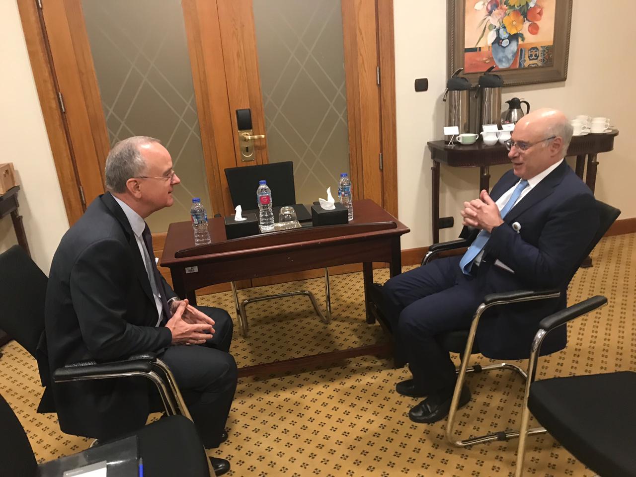 كما التقى وزير العمل أمين عام وزارة العمل القطرية يوسف بن محمد العثمان وجرى خلال اللقاء، بحثُ عدد من الموضوعات ذات الاهتمام المشترك، وسبل تعزيز التعاون الثنائي في مجال العمل وآليات تطوير التعاون الثنائي في مجال العمل والعمال بين البلدين, كما تم بحث المبادرة القطرية للتشغيل.
