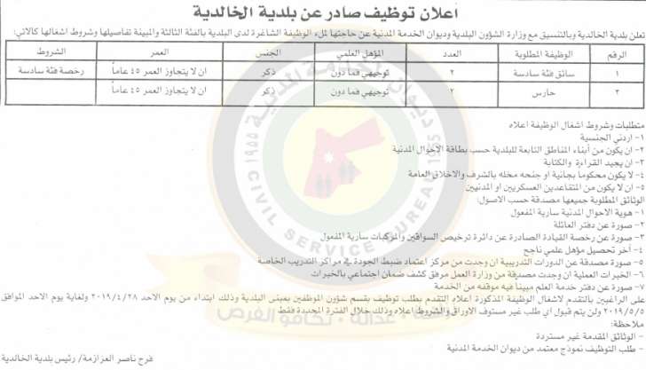 . بالاسماء .. الخدمة المدنية يعلن وظائف شاغرة في مختلف الوزارات On أبريل 30, 2019 Share وكالة الناس – دعا الديوان بالتنسيق مع مختلف المؤسسات والوزارات إلى تعبئة شواغر مختلفة استنادا للشروط المنصوص عليها من كل مؤسسة. . لتح