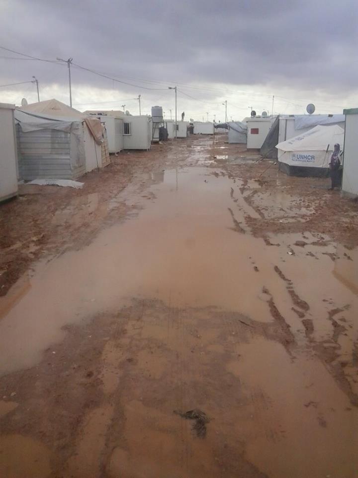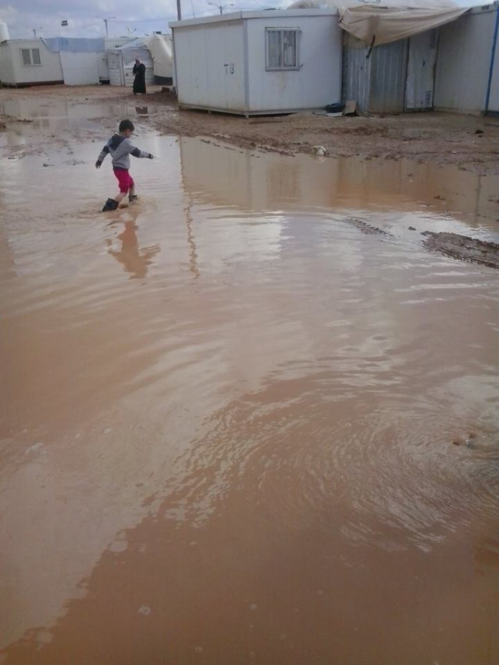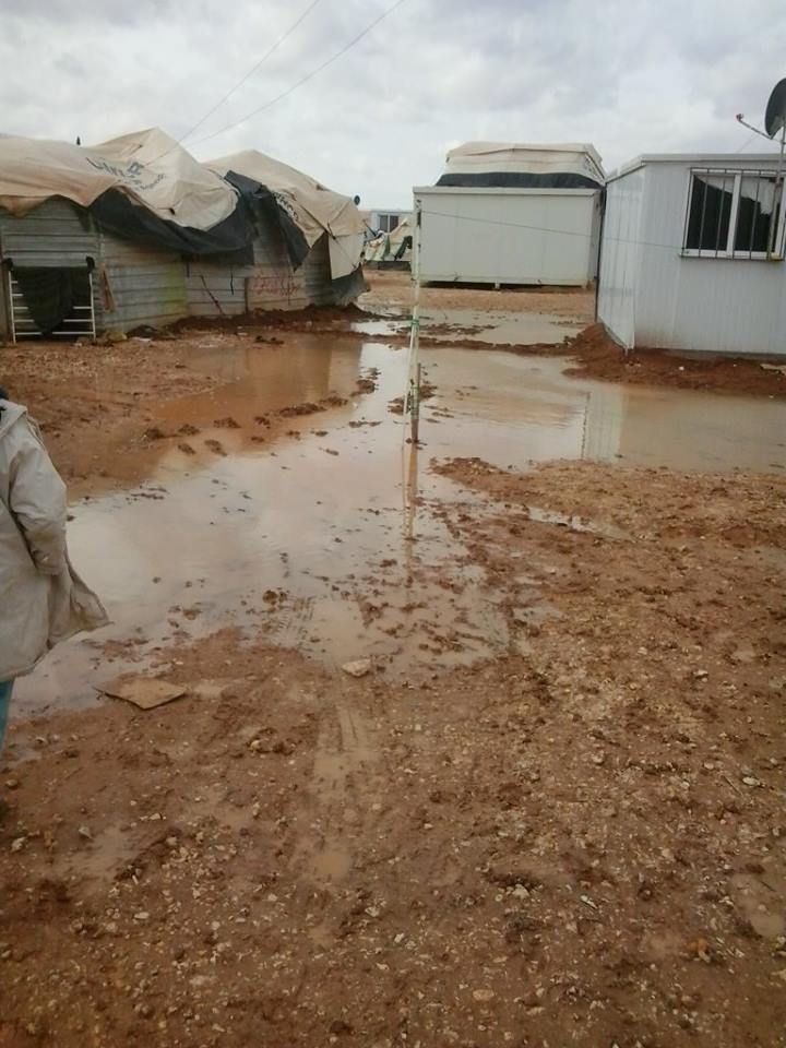 بالصور شاهد مخيم الزعتري خلال عاصفة إليكسا