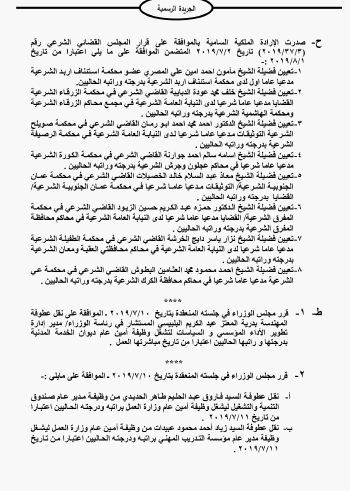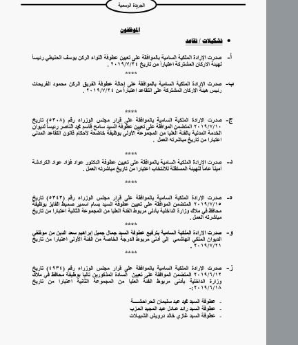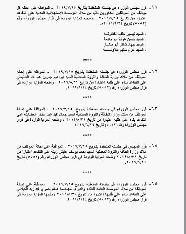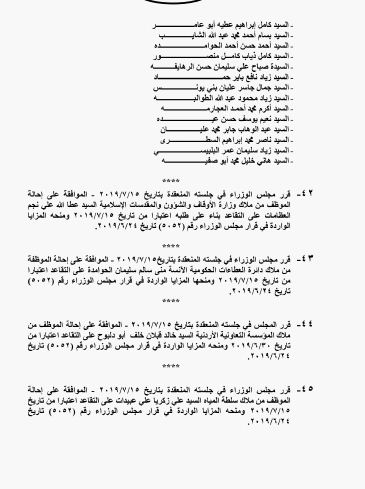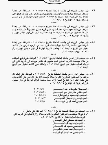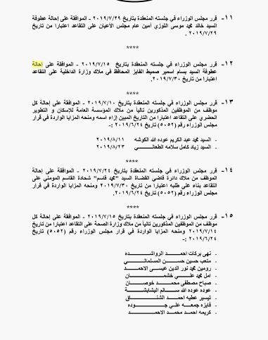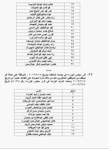 وكالة الناس – صدر في عدد الجريدة الرسمية قرارت مجلس الوزراء باحالة عدد كبير من موظفي الدولة في مختلف الوزارات والدوائر الرسمية الى التقاعد.