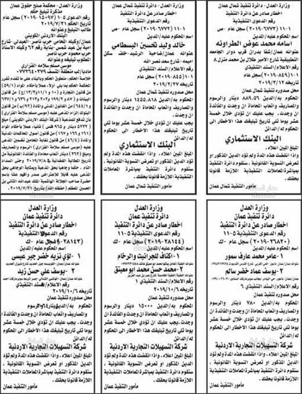 كما صدرت اخطارات عن دوائر التنفيذ في المحاكم.