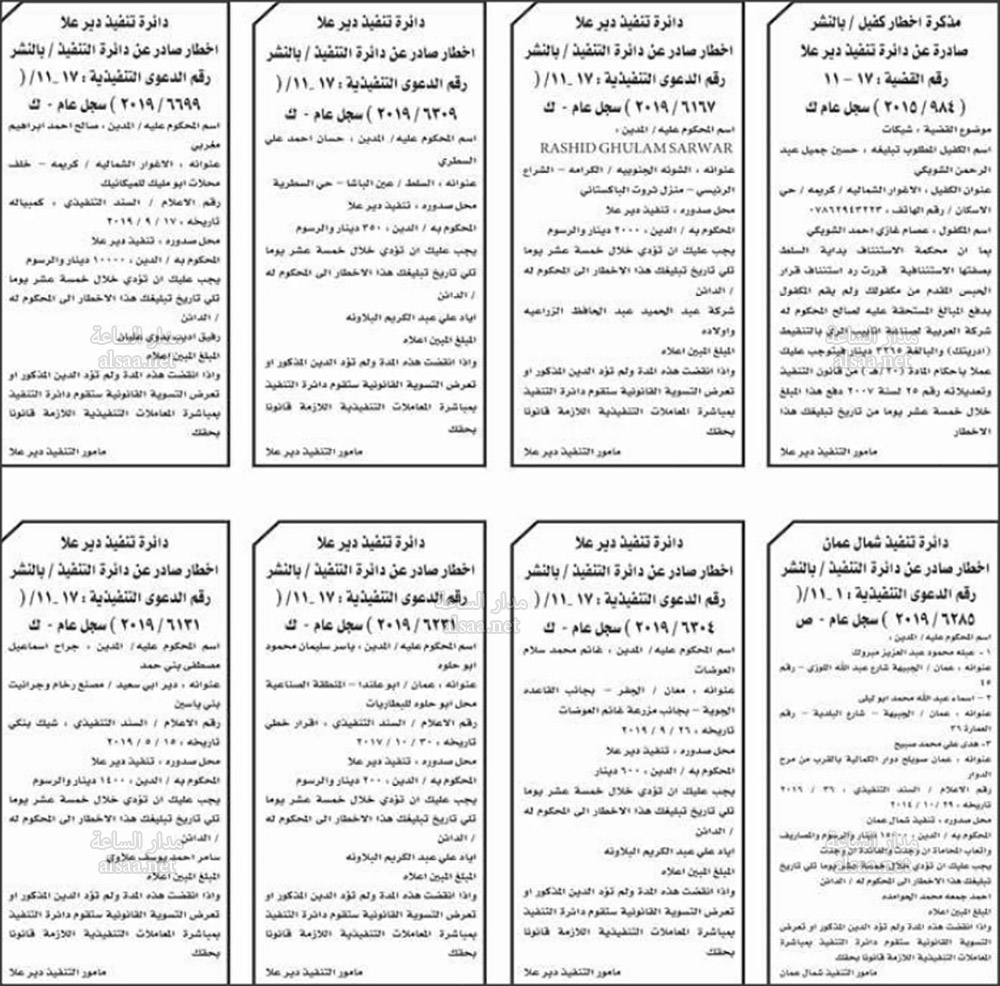 وتاليا اسماء كل ما ورد في الاعلى، مع الاشارة إلى أن “مدار الساعة” ستقوم يومياً بنشر مذكرات التبليغ والاخطارات: