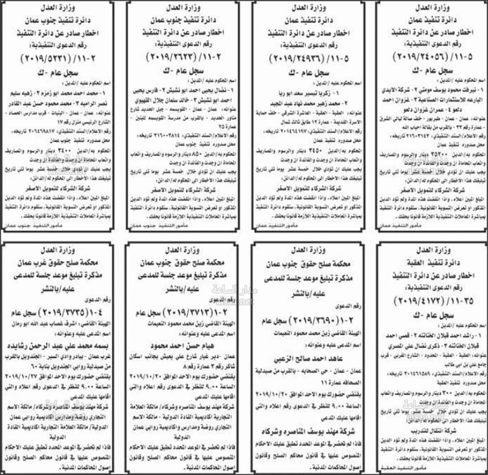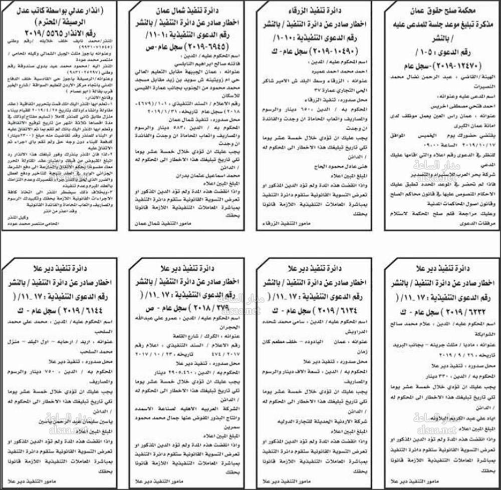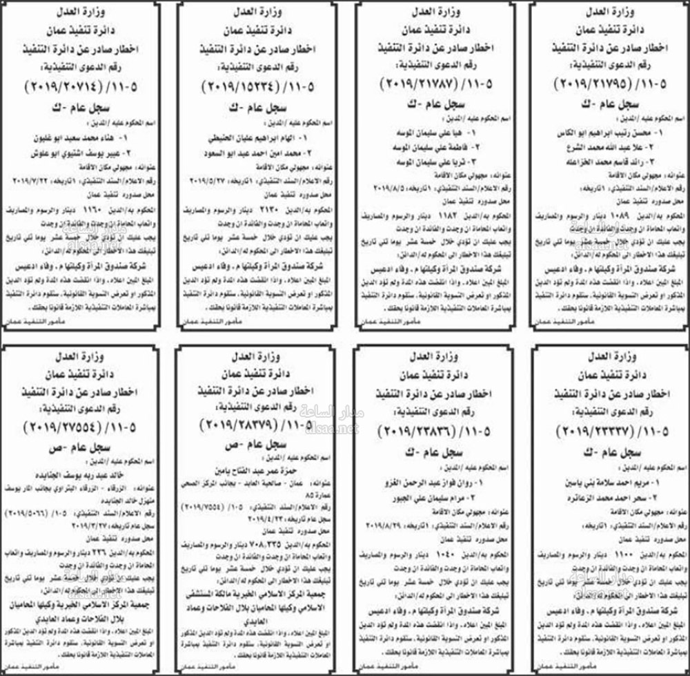 تنفيذ قضائي وإنذارات ومواعيد جلسات .. اسماء