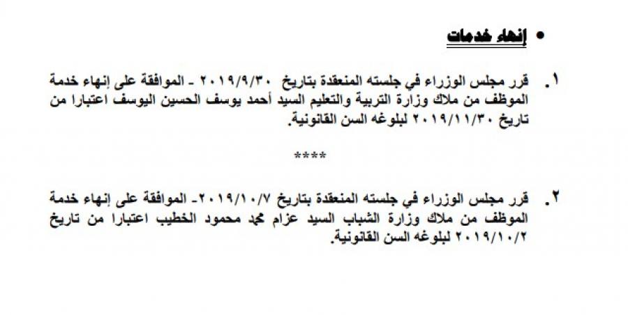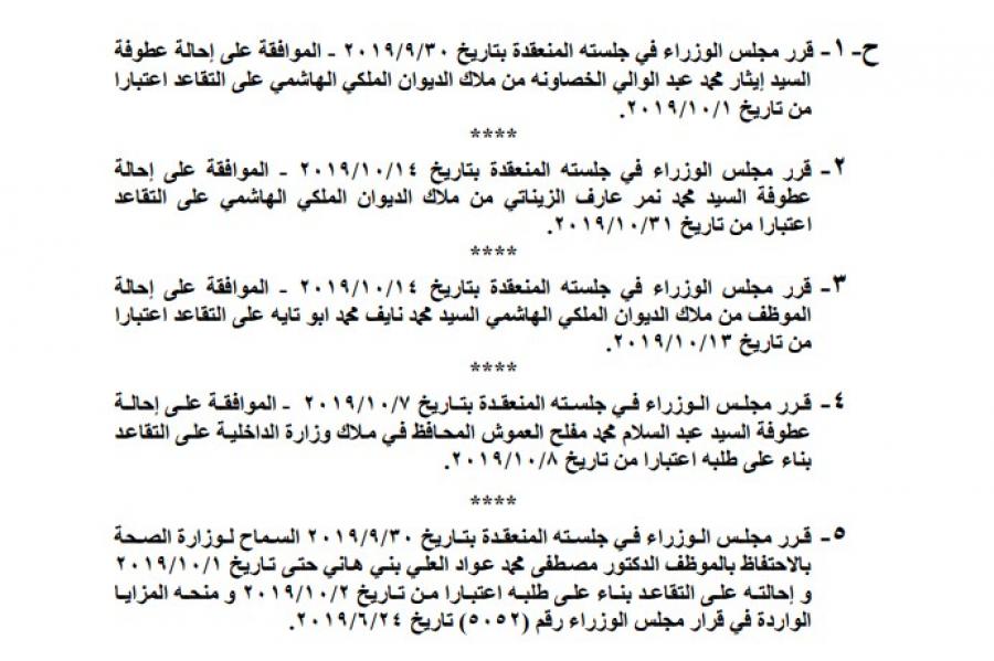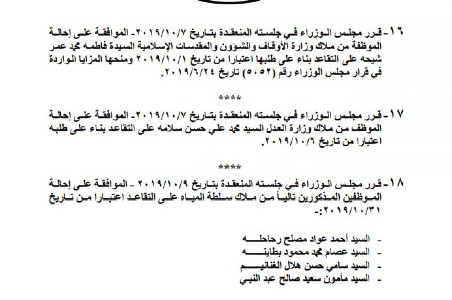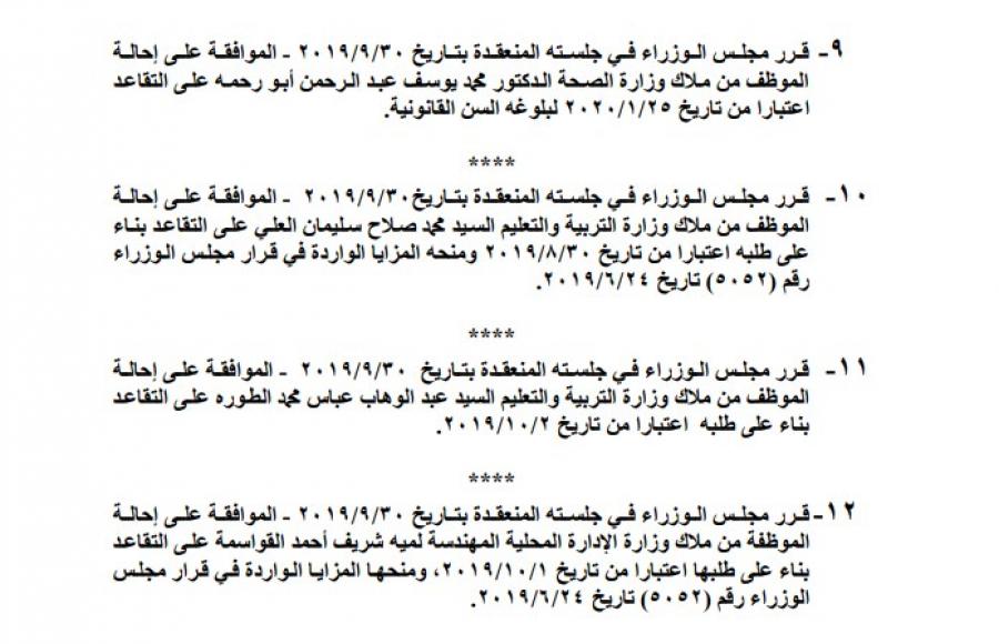 احالة عدد من الموظفين الحكوميين الى التقاعد .. أسماء Last updated أكتوبر 16, 2019 Share صدر في عدد الجريدة الرسمية اليوم الاربعاء قرارات مجلس الوزراء بالموافقة على احالة عدد من الموظفين الحكوميين الى التقاعد ، واجراء تشكيلات في مواقع حكومية. وتاليا الاسماء: