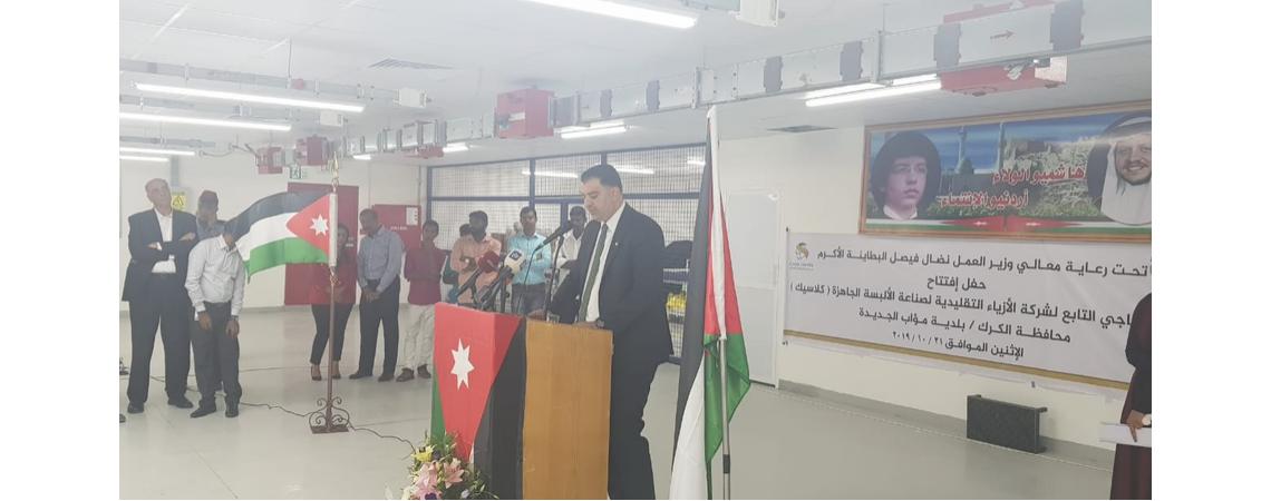 وكالة الناس – إفتتح وزير العمل نضال فيصل البطاينة اليوم الاثنين الفرع الإنتاجي الجديد لشركة الأزياء التقليدية لصناعة الألبسة, في بلدية مؤاب الجديدة/ في محافظة الكرك, الذي سيوفر نحو 1000 فرصة عمل لأبناء المنطقة.