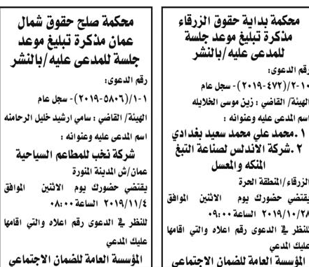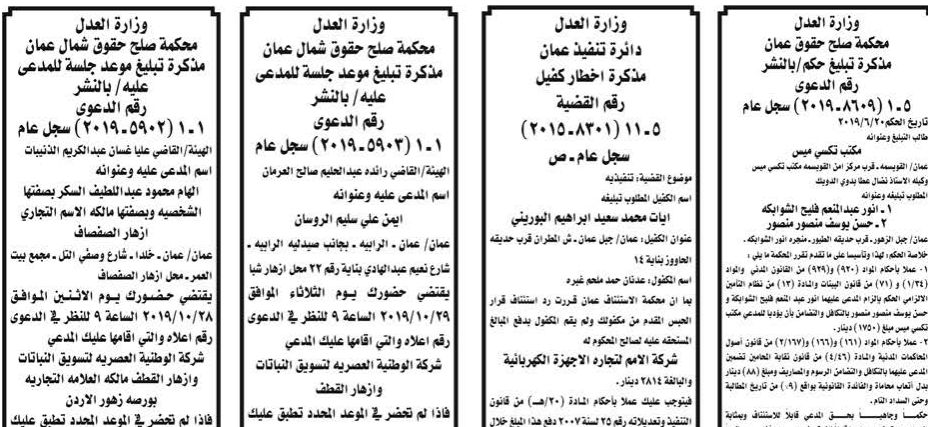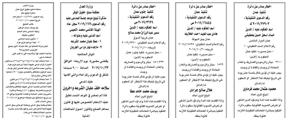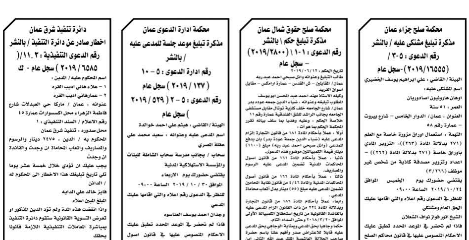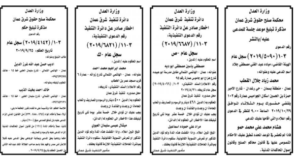 بالأسماء .. إخطارات وتبليغات في المحاكم لعدد من المواطنين