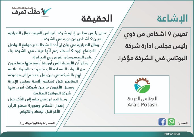 وكالة الناس – منصة ” حقك تعرف ” توضح حقيقة تعيين 9 أشخاص من ذوي رئيس مجلس إدارة “البوتاس” .