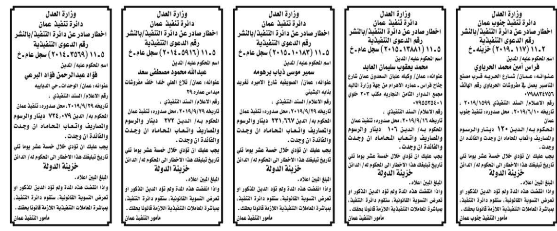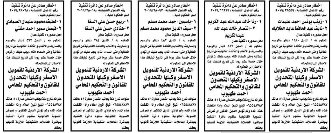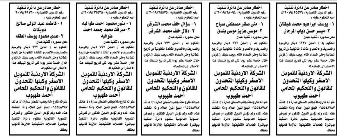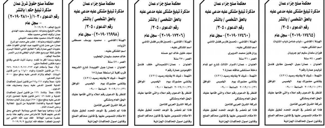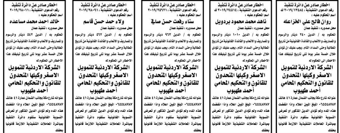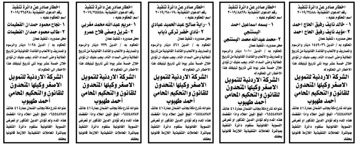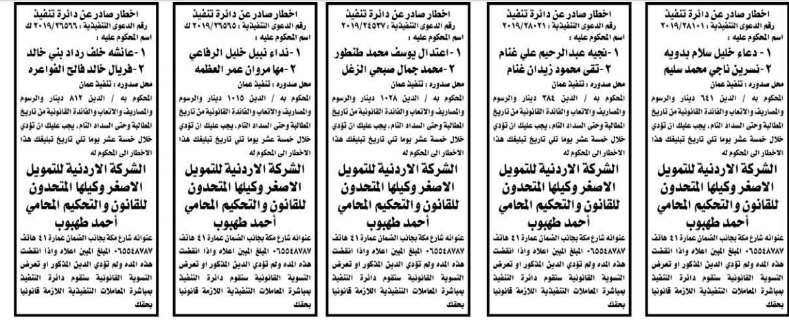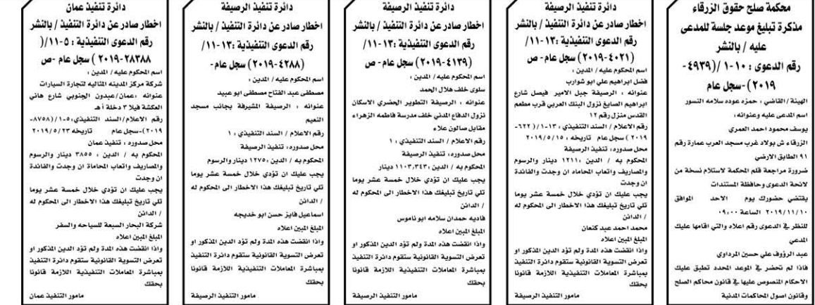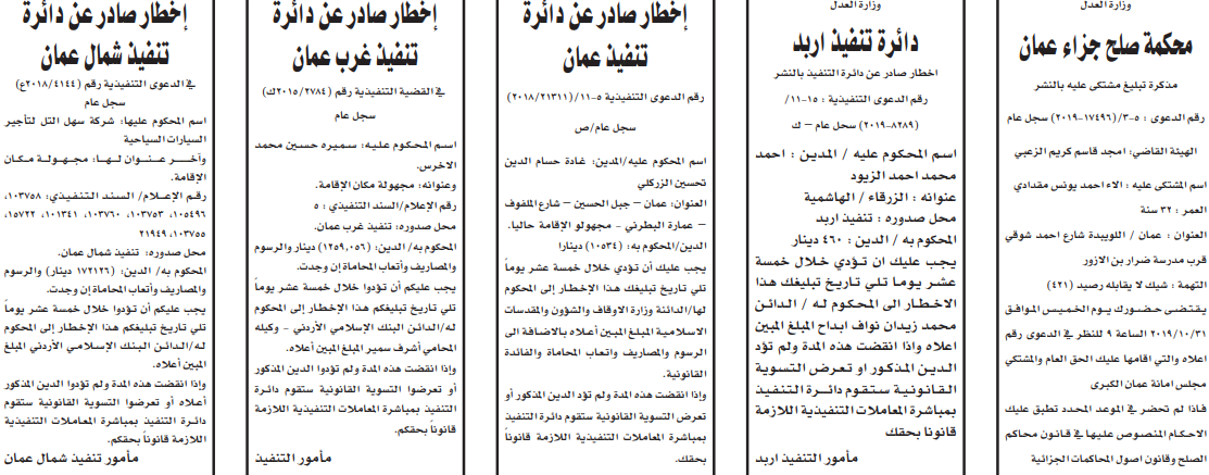 وتضمنت مذكرات الطلب التي تنشرها سرايا بعض الاحكام الصادرة غيابياً إضافة إلى إخطارات وإشعارات صادرة عن دوائر التنفيذ بحق مدعى عليهم أشخاص كانوا أم شركات.
