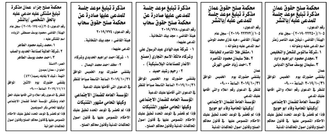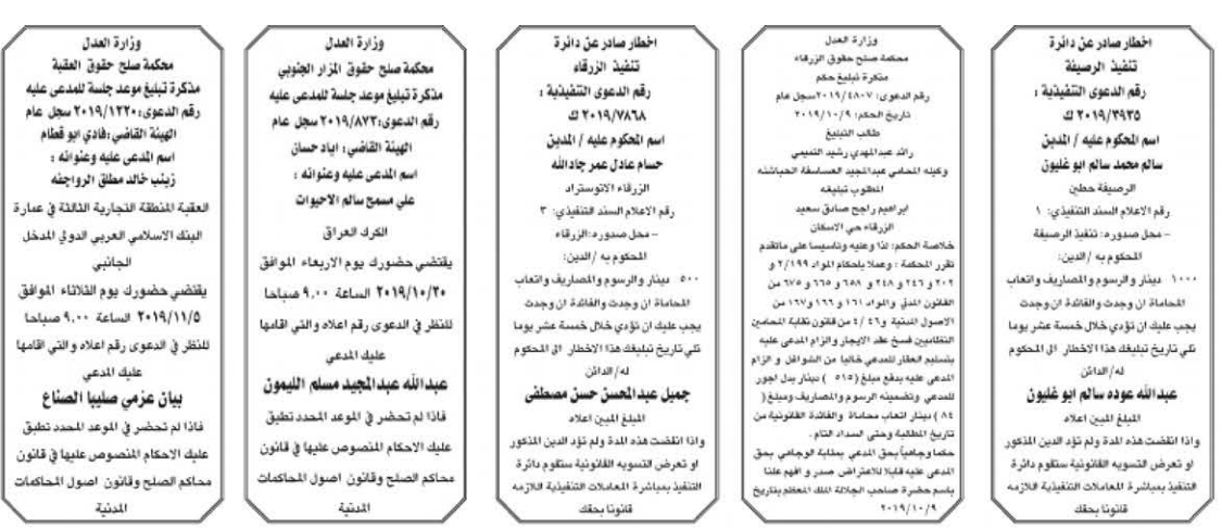 بالأسماء .. إخطارات وتبليغات في المحاكم لعدد من المواطنين
