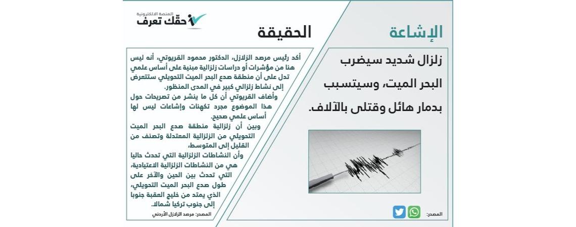 مرصد الزلازل: إشاعة زلزال البحر الميت مكررة وغير علمية