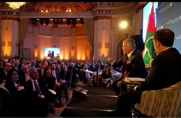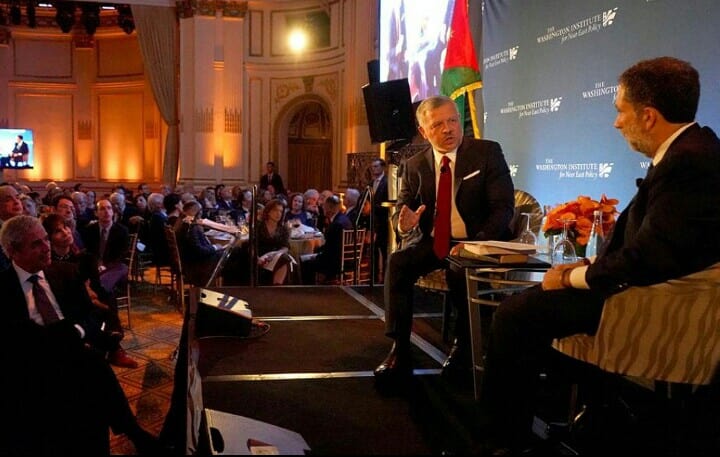وكالة الناس – شارك جلالة الملك عبدالله الثاني، بحضور جلالة الملكة رانيا العبدالله، وسمو الأمير الحسين بن عبدالله الثاني ولي العهد، في نيويورك مساء أمس الخميس، في جلسة حوارية، نظمها معهد واشنطن لسياسة الشرق الأدنى، وأدارها المدير التنفيذي للمعهد، روبرت ساتلوف.