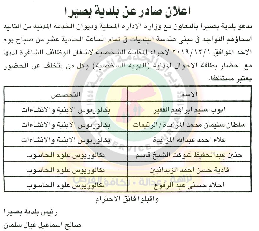 بالاسماء.. وظائف شاغرة ومدعوون للتعيين