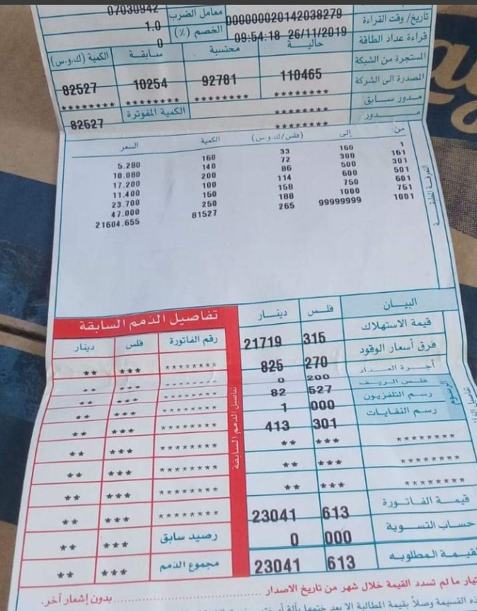 وقالت المواطنة: إن فاتورة الكهرباء الشهرية، التي تصلها عادة، لا تتجاوز الـ13 دينارا، واضافت أن منزلها لا يوجد به أجهزة كهربائية زائدة، لتتم الزيادة عليها بهذا الشكل مرة واحدة.