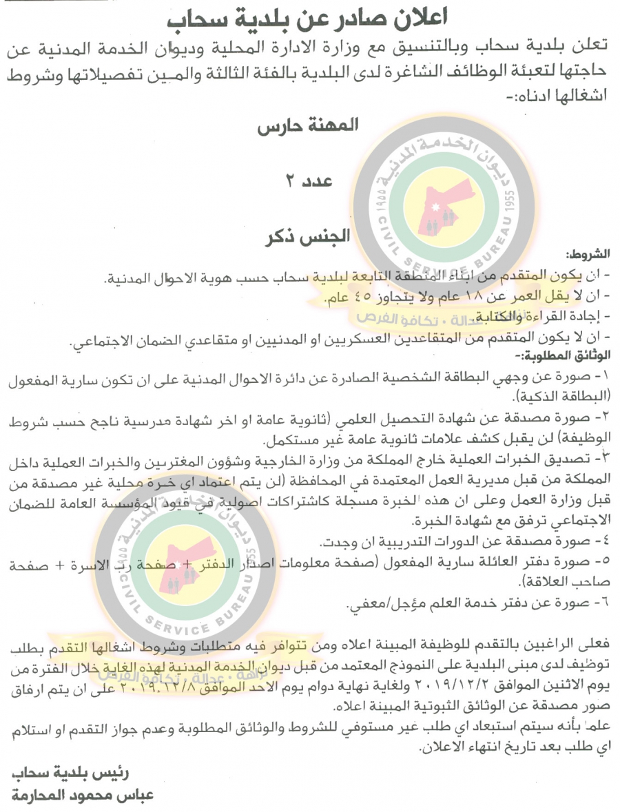وكالة الناس – يدعو ديوان الخدمة المدنية بالتعاون مع مختلف الوزارات والمؤسسات الحكومية، التالية أسماؤهم إلى تعبئة شواغر مختلفة استنادا للشروط المنصوص عليها من كل مؤسسة، وفق صفحة ديوان الخدمة المدنية على “الفيسبوك”.