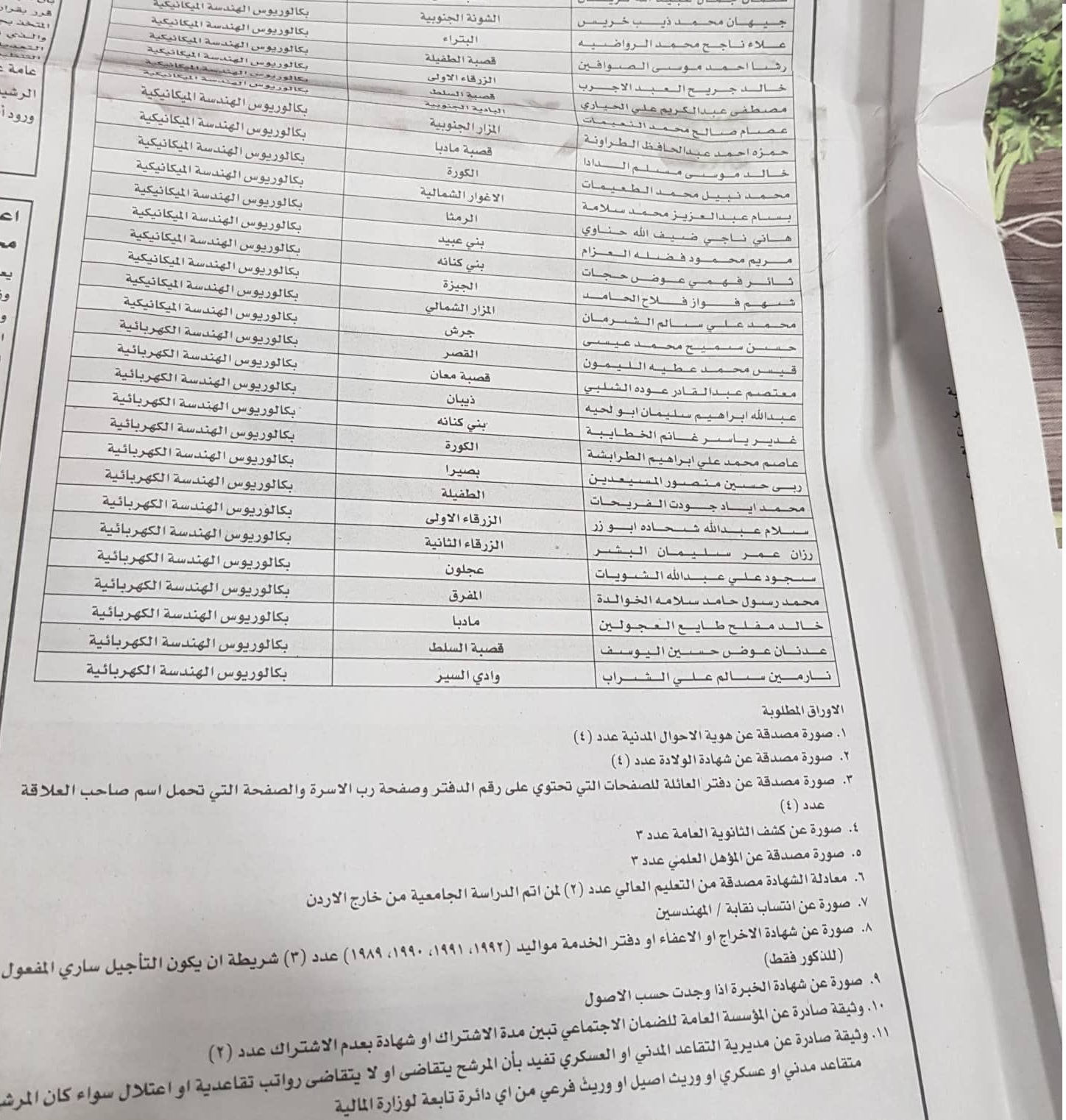 وكالة الناس – أعلنت وزارة التربية والتعليم اليوم الأربعاء أسماء المهندسين الذين وقع عليهم الاختيار للتعيين بعد إجراء الامتحان التنافسي والمقابلات الشخصية للعمل في الوزارة.وطلبت الوزارة من التالية اسماؤهم استكمال اجراءات التعيين، وهم: