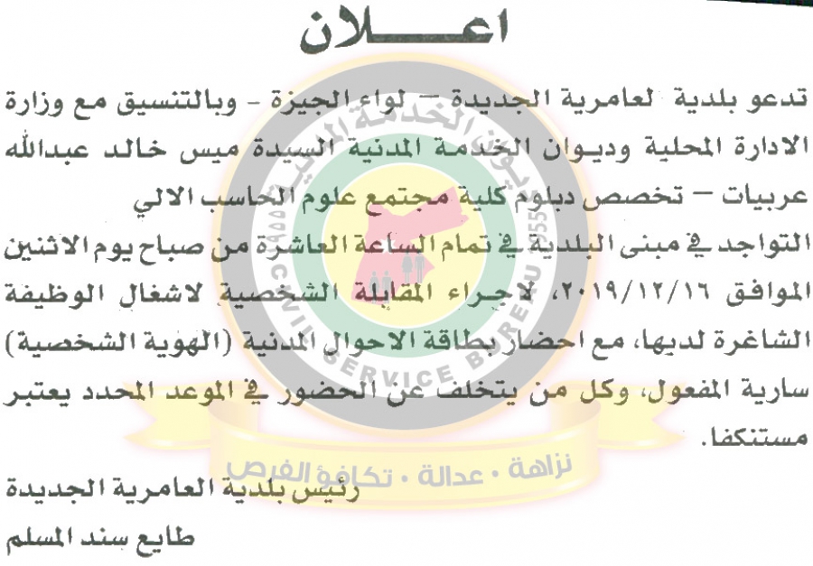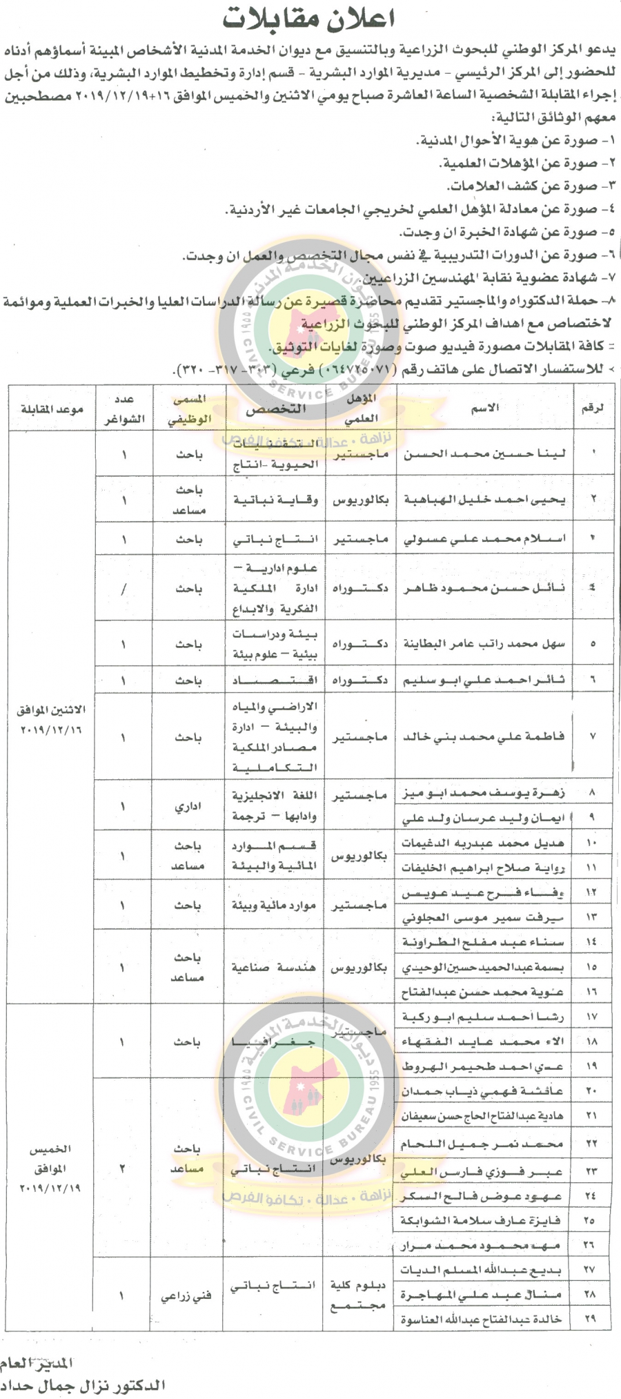 وكالة الناس – دعا ديوان الخدمة المدنية بالتعاون مع مختلف الوزارات والمؤسسات الحكومية، التالية اسماؤهم لاجراء المقابلات الشخصية وعقد الامتحان التنافسي لغايات التعيين.