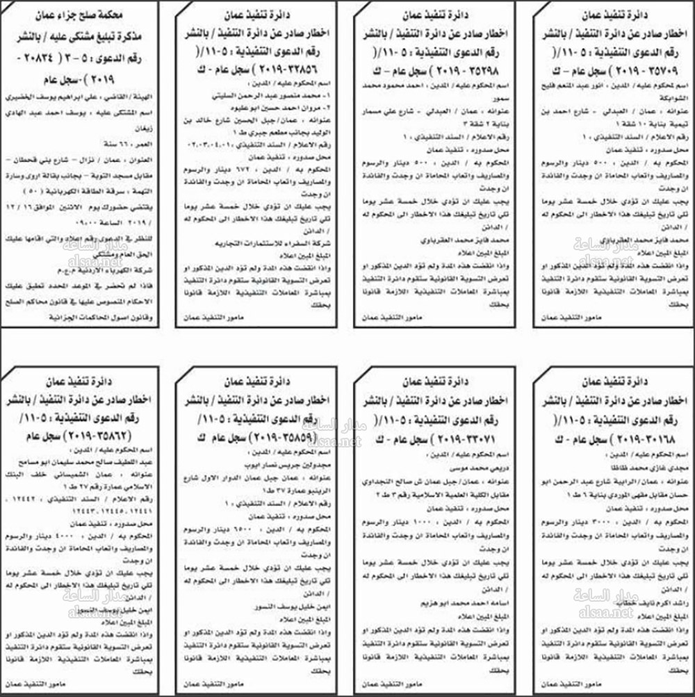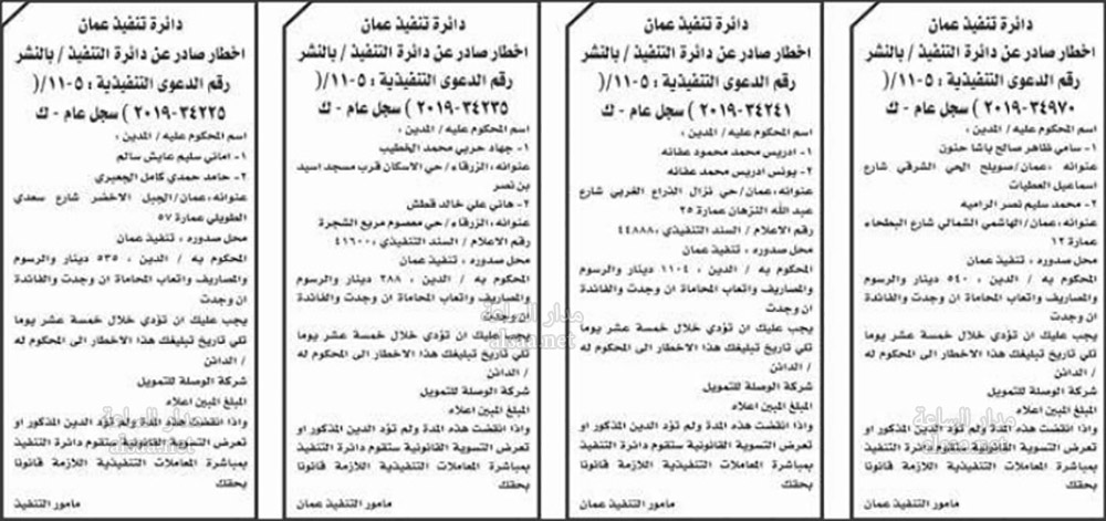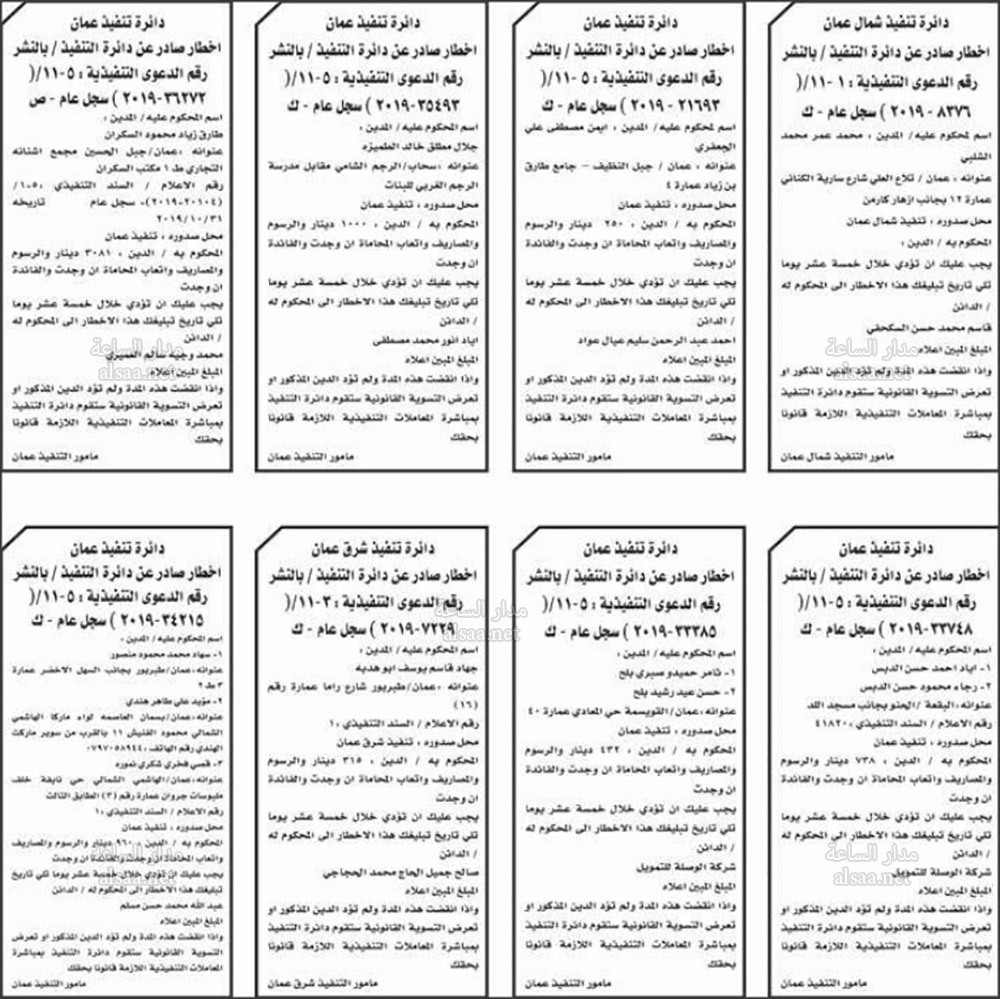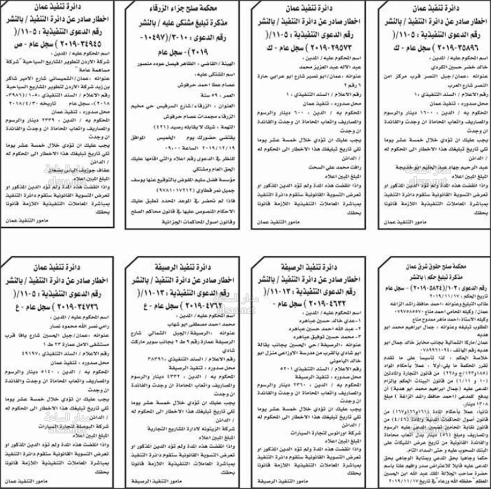 كما صدرت اخطارات عن دوائر التنفيذ في المحاكم.