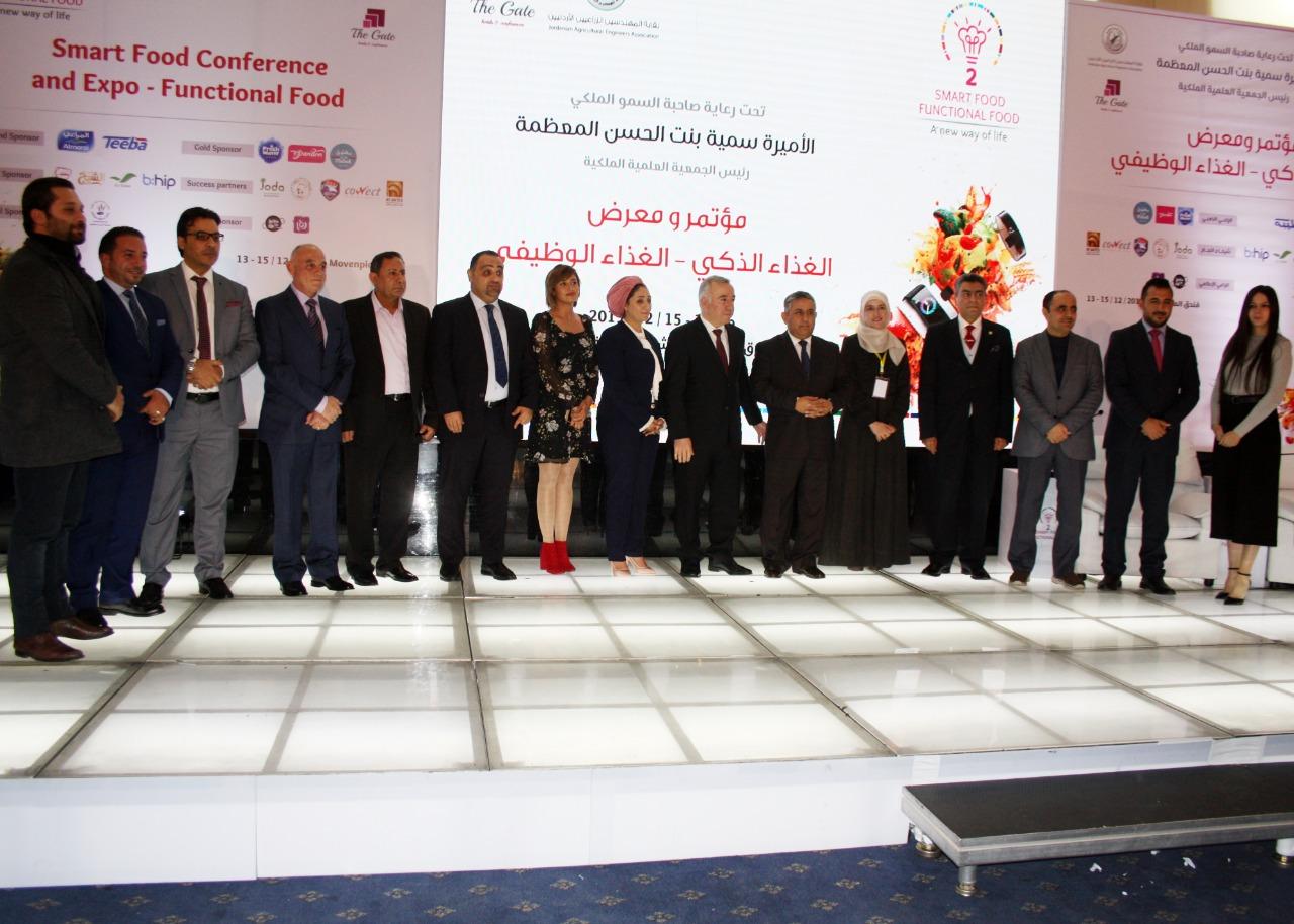 وفي نهاية حفل الافتتاح قام مندوب صاحبة السمو الملكي الاميرة سمية بنت الحسن المعظمة بتكريم الشركات الراعية لمؤتمر ومعرض الغذاء الذكي الغذاء الوظيفي، وتسلم نيابة عن سموها درع تذكاري من نقيب المهندسين الزراعيين المهندس عبد الهادي الفلاحات و مدير شركة البوابة لإدراة المؤتمرات المهندسة رانيا البابلي.