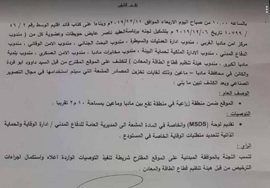 حقيقة دفن مواد كيماوية مشعة في مأدبا (وثيقة)