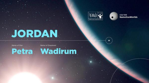 ويأتي الاعلان احتفالا بمئوية الاتحاد الذي تأسّس في العام 1919 بعد ان قبل نتائج التصويت الشعبيّ الأردنيّ الخاصّ بتسمية النجوم والكواكب المرشّحة للحياة من خارج النظام الشمسي، وذلك باختيار أسماء مدن أردنية ضمن المشروع العالمي الذي دعا الدول كافّة لتسمية النجوم والكواكب بأسماء مدن وأماكن تاريخية .