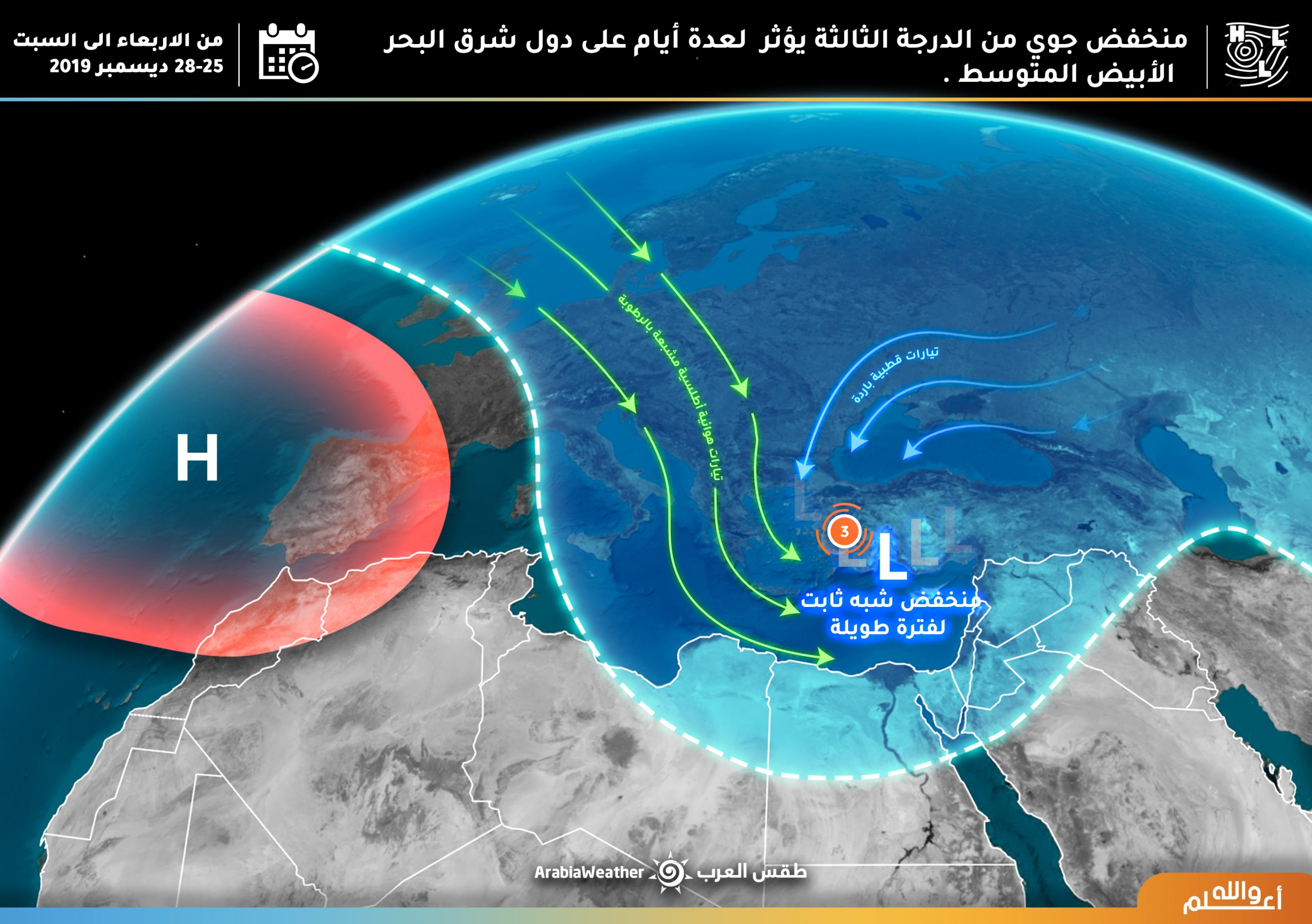 وكالة الناس – قال طقس العرب أن المنخفض الجوي الذي تم تصنيفه من الدرجة الثالثة (منخفض جوي متوسط إلى عالي الفعالية) يتمركز يوم الثلاثاء جنوب غرب تركيا ويتحرك ببطئ شرقا نحو غرب جزيرة قبرص ليلة الثلاثاء/ الأربعاء، حيث يتوقع ان يصبح مركزه يوم الأربعاء فوق جزيرة قبرص.
