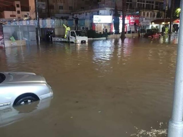 أظهرت فيديوهات متداولة على مواقع التواصل الاجتماعي غرق شوارع بمنطقة الدوار السابع في العاصمة عمان، وذلك بعد هطول الأمطار لساعات معدودة، بينما نفى أمين عمّان يوسف الشواربة أي حوادث غرق في العاصمة.