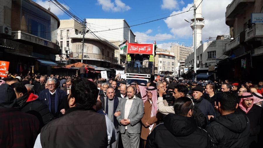وكالة الناس – انطلقت بعد صلاة الجمعة مسيرة حاشدة رفضا لاتفاقية الغاز مع الاحتلال من أمام المسجد الحسيني في وسط البلد، وأدان المشاركون  “الموقف الحكومي الرسمي الذي ضرب بعرض الحائط كافة المواقف الشعبية والحزبية الوطنية الرافضة لما يسمى باتفاقية الغاز مع الاحتلال الصهيوني”.