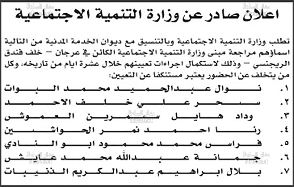 عاجل: مدعوون للتعيين في السياحة والتنمية الاجتماعية ودائرة قاضي القضاة..أسماء