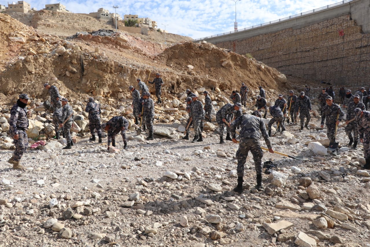 وأضاف إلى أنه يشارك في عمليات البحث والتفتيش ما يزيد عن (2000) شخص مزودين بمعدات بحث وإنقاذ متخصصة لتمشيط وتفتيش طول مجرى السيل الممتد من وادي القمر وصولاً إلى سد الملك طلال.