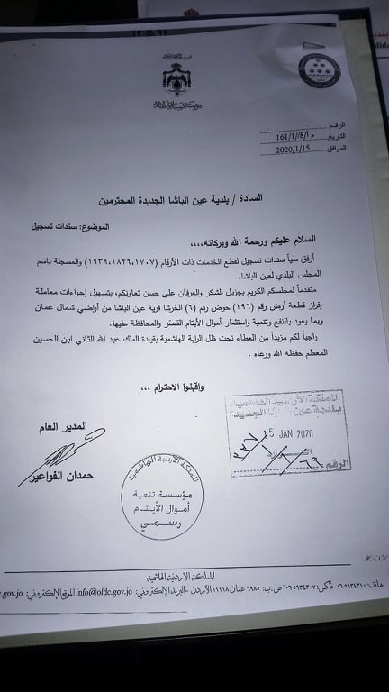 الفاعوري: بلدية عين الباشا تملكت أراضي بقيمة 2 مليون دينار (وثائق)