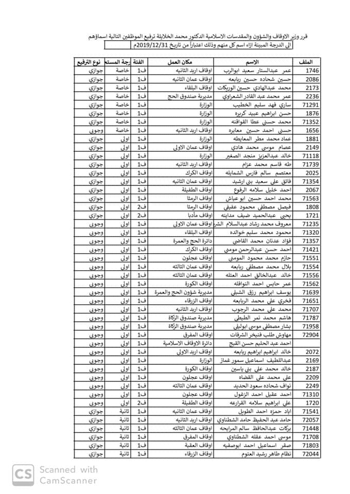 وكالة الناس – قرر وزير الأوقاف والشؤون والمقدسات الإسلامية الدكتور محمد الخلايلة ترفيع الموظفين التالية أسماؤهم إلى الدرجة المبينة إزاء اسم كل منهم وذلك إعتباراً من تاريخ 2019/12/31م :