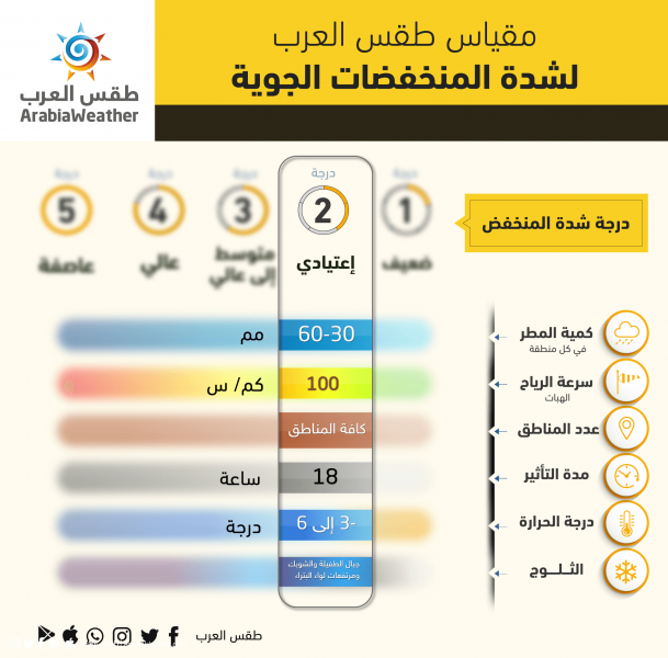ويوصي طقس العرب خلال الحالة الجوية بضرورة الانتباه من: