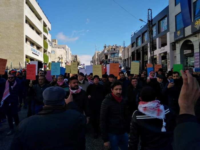 وكالة الناس – شارك العشرات، اليوم الجمعة، بمسيرة احتجاجية، بالعاصمة عمان، ضد اتفاقية الغاز الموقعة مع إسرائيل عام 2016، دعت اليها الحملة الوطنية الأردنية لإسقاط اتفاقية الغاز، وتسبب الجو البارد وتساقط الأمطار الشديد في ضعف الاستجابة للدعوة.