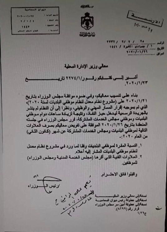 وكان مجلس الوزراء أقر النظام المعدل في الواحد والعشرين من الشهر الحالي، وتم بموجبه إقرار المسار المهني لموظفي البلديات ومجالس الخدمات المشتركة، لكنه لم ينشر في الجريدة الرسمية لعدم صدورها منذ ذلك التاريخ.