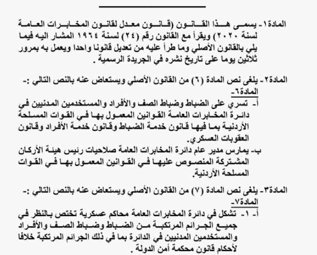 وكالة الناس – صدرت الارادة الملكية السامية ، بالموافقة على قانون معدل لقانون المخابرات العامة.