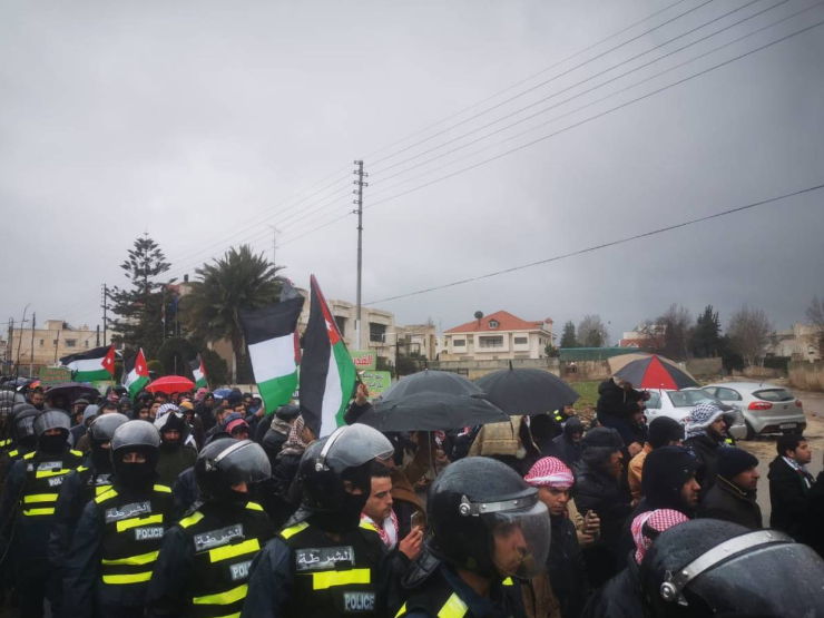 وكالة الناس – قام العشرات اليوم بالاعتصام امام السفارة الأمريكية في عمان بعد صلاة الجمعة، رفضا لصفقة القرن وذلك تلبية لدعوى التحالف الوطني لمجابهة صفقة القرن.