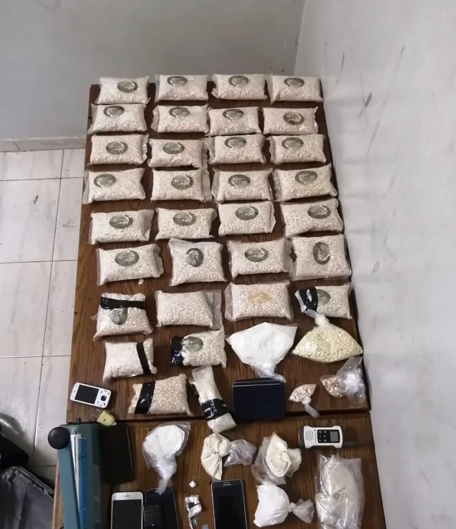 وفي القضية الأولى فقد جرت مداهمة منزل جنوب العاصمة بعد جمع المعلومات حول شخصين داخله والتأكد من حيازتهما لكميات كبيرة من الحبوب المخدرة حيث القي القبض عليهما وبتفتيش المنزل ضبط داخله على ٦٠ ألف حبة مخدرة إضافة إلى كمية من مادة الكوكائين المخدرة .