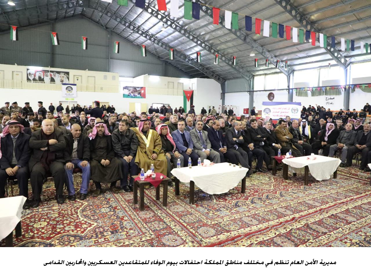 نظمت مديرية الأمن العام في مختلف مناطق المملكة احتفالات بيوم الوفاء للمتقاعدين العسكريين والمحاربين القدامى الذي يصادف في الخامس عشر من شهر شباط كل عام.