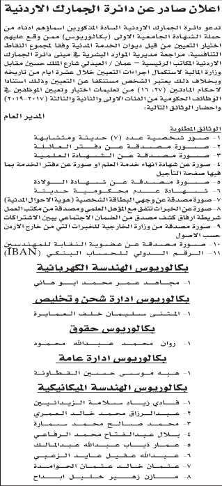 بالاسماء .. مدعوون للتعيين في دائرة الجمارك