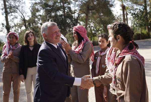 الملك يشارك كشافة زيارتهم لقصر رغدان
