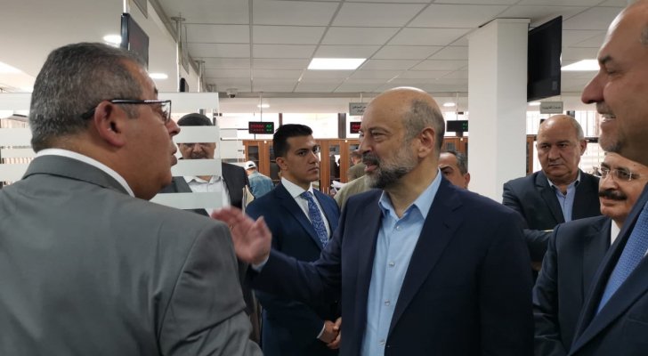 وزار الرزاز الاربعاء، مركز الخدمات الحكومية، المقام بجانب قصر العدل ويقدم ٨٠ خدمة تشمل ١٠ جهات حكومية بمعدل إنجاز ١١ ألف معاملة بساعات عمل من ٩ صباحاً إلى ٩ ليلاً منذ إنشائه منتصف شباط الماضي