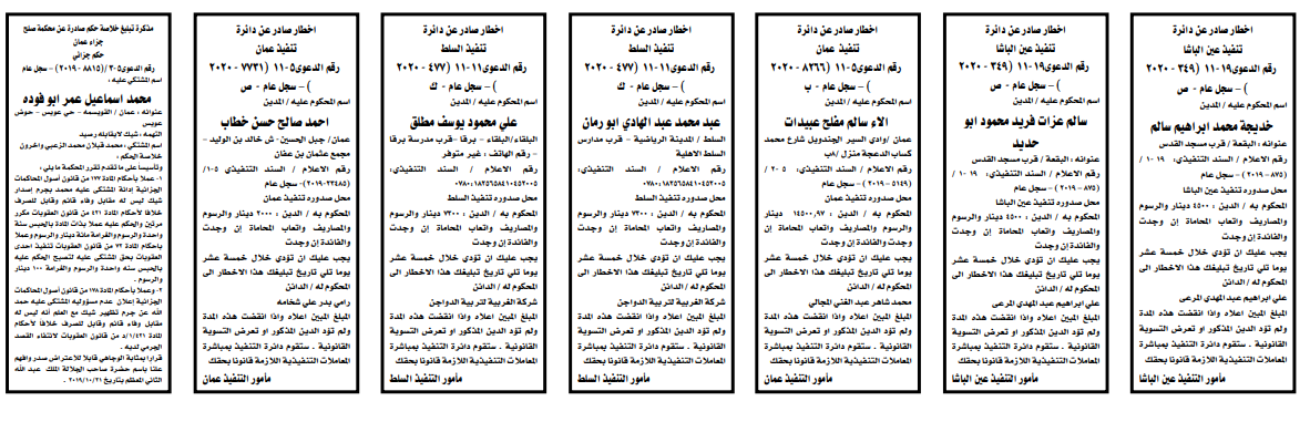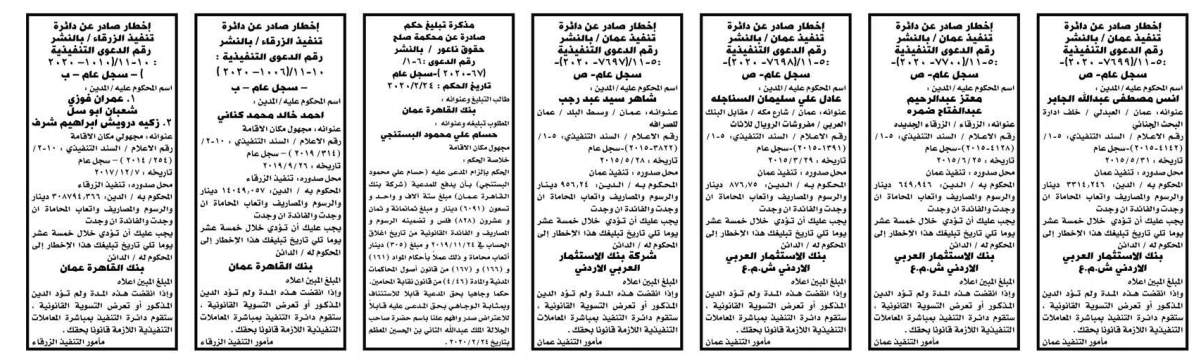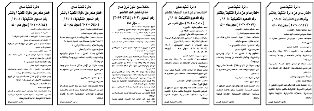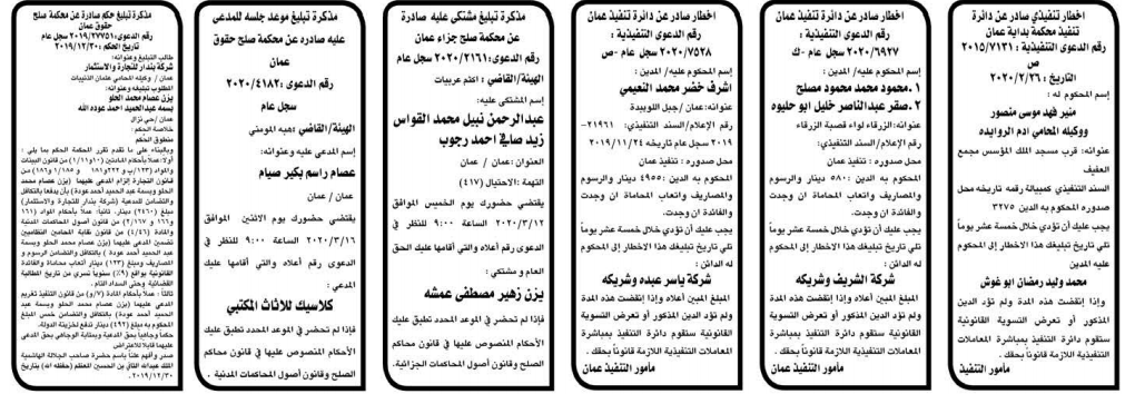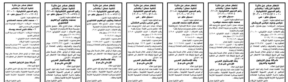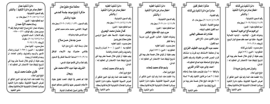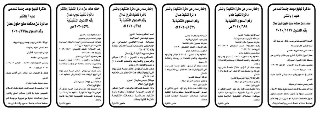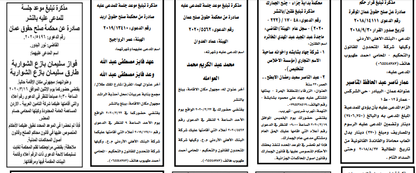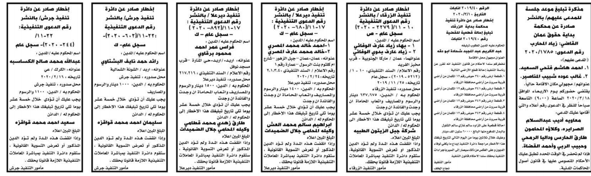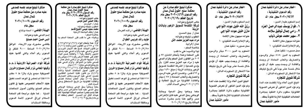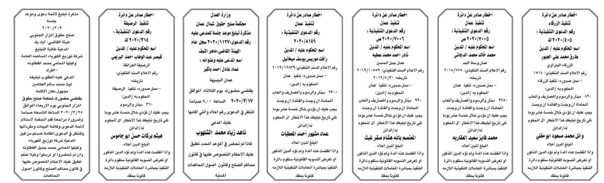 وتضمنت مذكرات الطلب بعض الاحكام الصادرة غيابياً إضافة إلى إخطارات وإشعارات صادرة عن دوائر التنفيذ بحق مدعى عليهم أشخاص كانوا أم شركات.