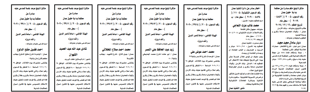 بالأسماء .. إخطارات وتبليغات في المحاكم لعدد من المواطنين