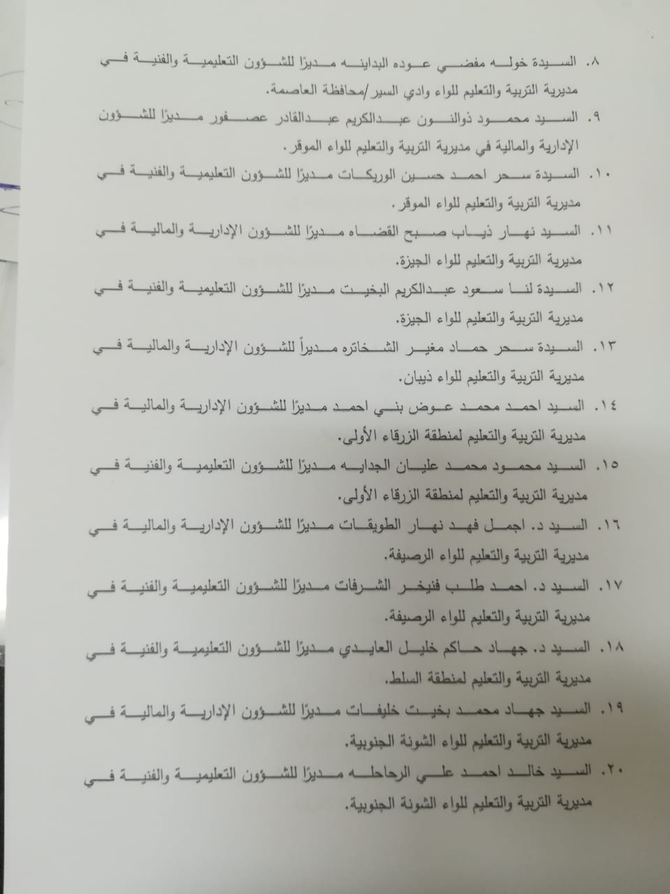 بالاسماء .. تشكيلات إدارية واسعة في التربية Last updated مارس 12, 2020 Share وكالة الناس – قرر وزير التربية والتعليم الدكتور تيسير النعيمي اجراء تنقلات بين عدد من موظفي الوزارة وذلك استناداً لأحكام المادة 92/ج/2 من نظام الخدمة المدنية رقم 9 لسنة 2020. وتالياً الاسماء..