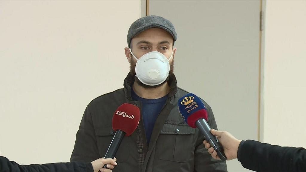 وتداول ناشطون لحظة مغادرة المصاب بفايروس الكورونا محمد الحياري وزميله الحجر الصحي.