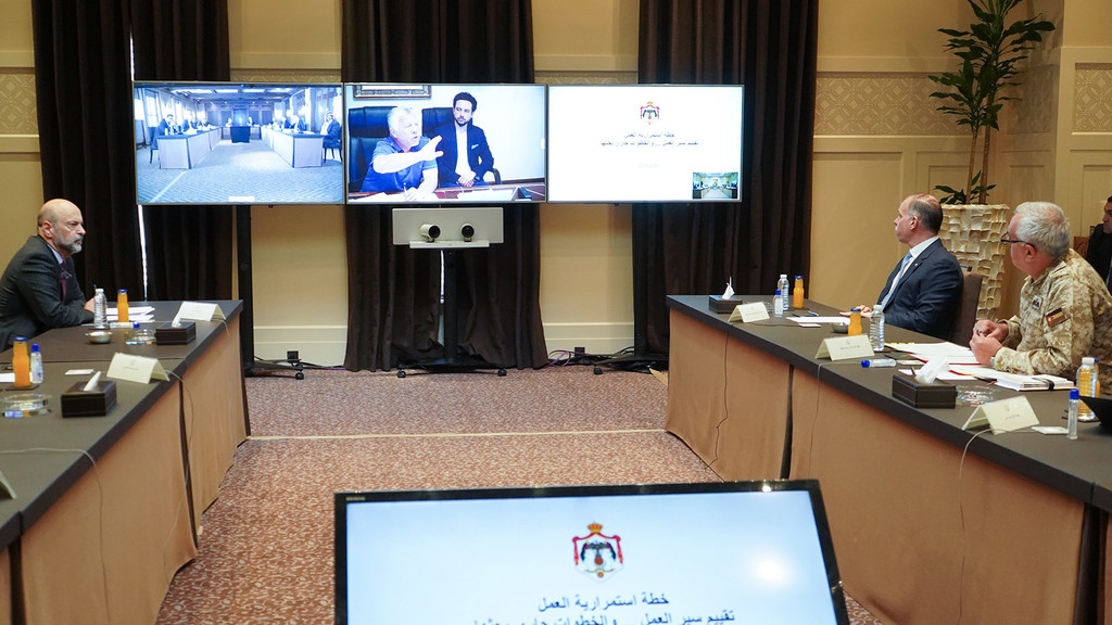 جلالته استمع خلال الاجتماع إلى إيجاز من رئيس الوزراء عمر الرزاز، والمعنيين، حول آليات تنفيذ الإجراءات المتعلقة بمواجهة الفيروس، بشكل يضمن صحة وسلامة المواطنين، ويراعي تلبية احتياجاتهم الأساسية.